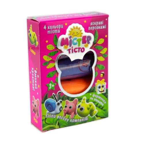 Set of modeling clay Strateg Mister dough 4 colors with glitter in Ukrainian (71508)