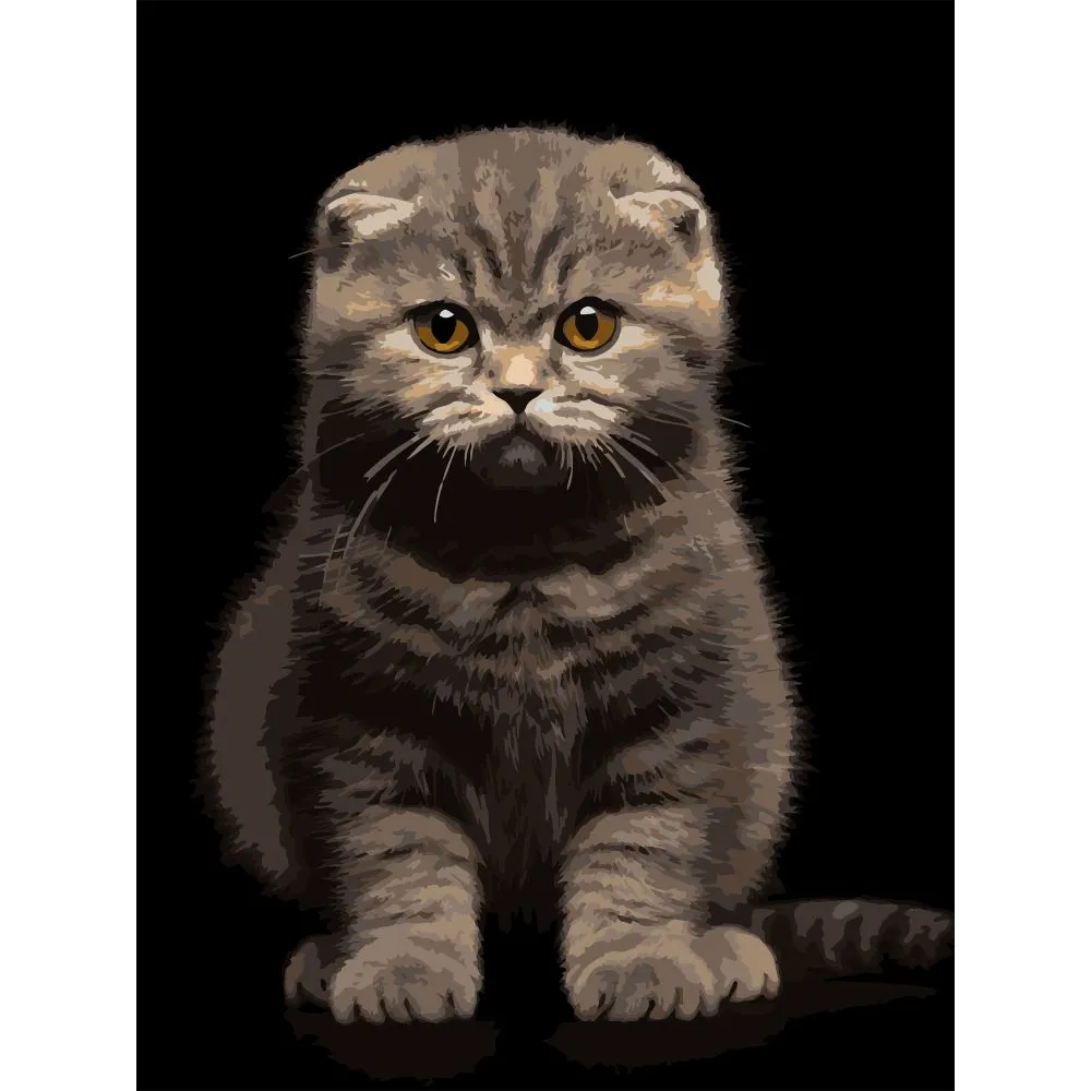 Painting by numbers Strateg Gray kitten on a black background 30Х40 (FH-25)