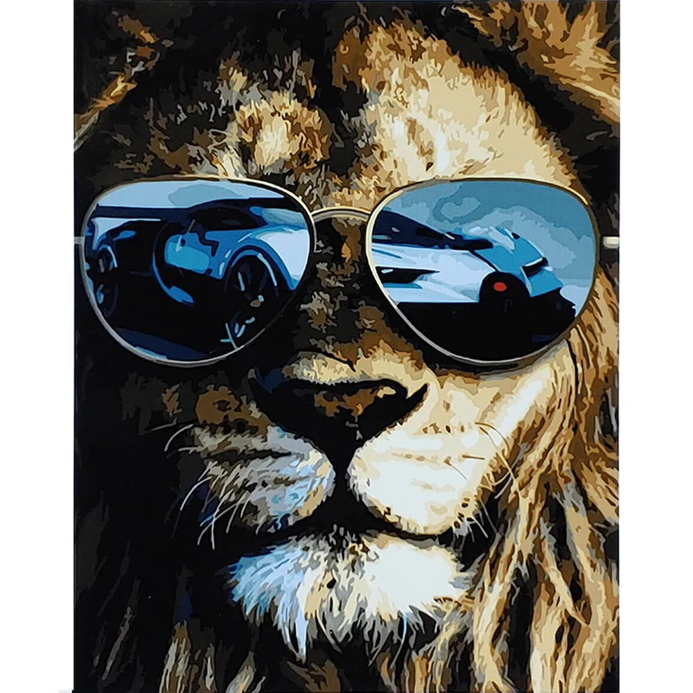Paint by number Strateg Lion racer with varnish and level size 40x50 cm (SY6775)