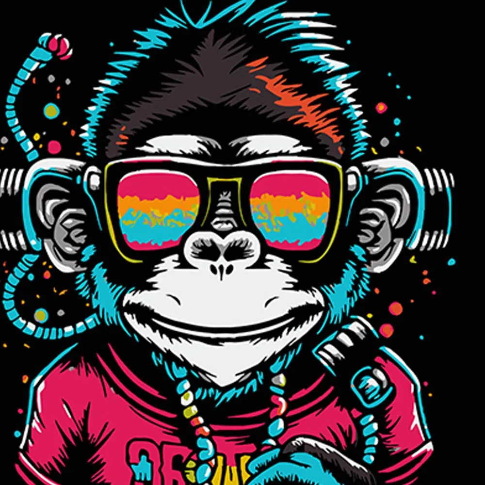 Paint by number Strateg Monkey in headphones and glasses on a black background size 40x40 cm (AV4040-53)