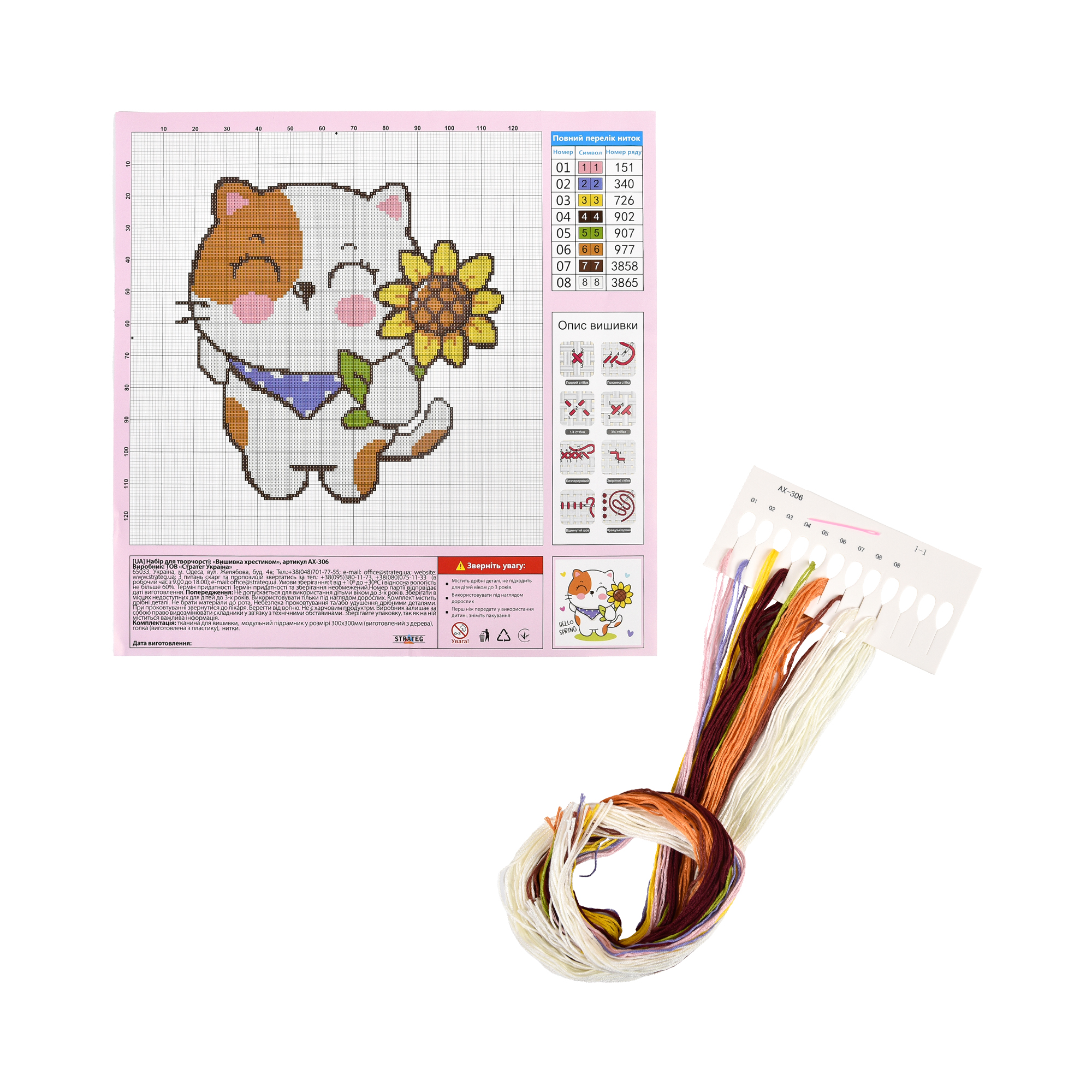 Cross-stitch kit for creativity Kitten with sunflower Strateg size 30x30 cm (AX-306)