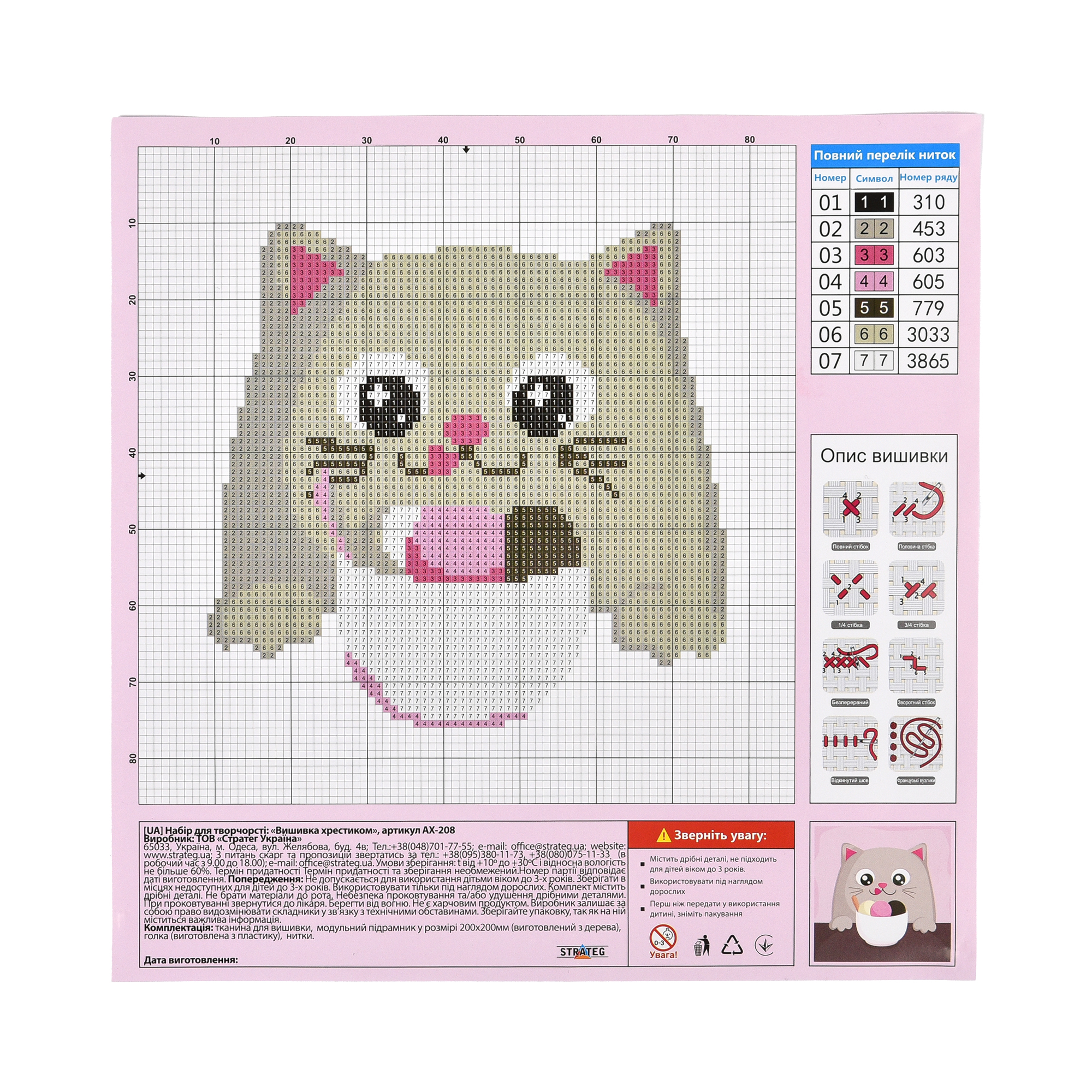 Cross-stitch kit for creativity Treats for a furry friend Strateg size 20x20 cm (AX-208)