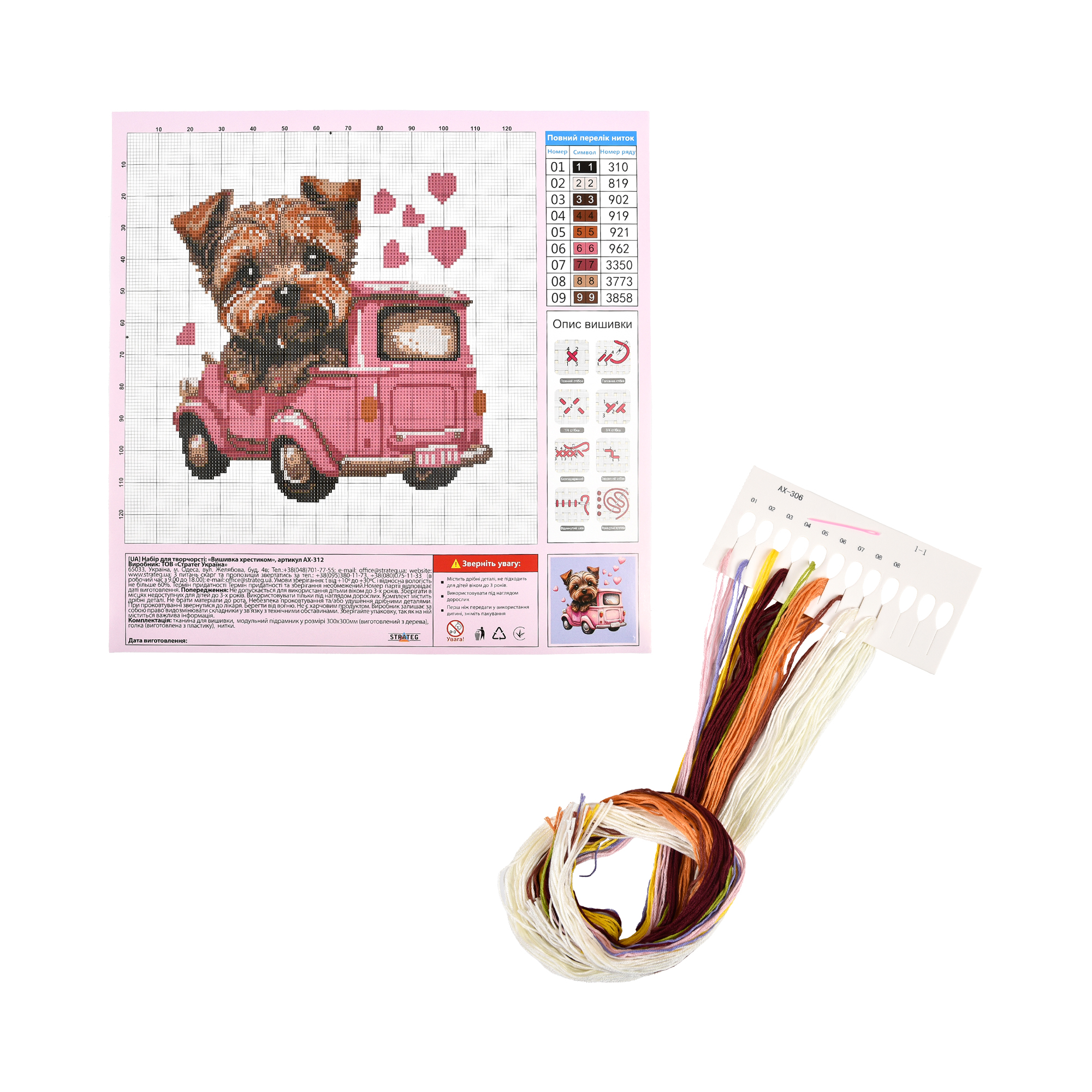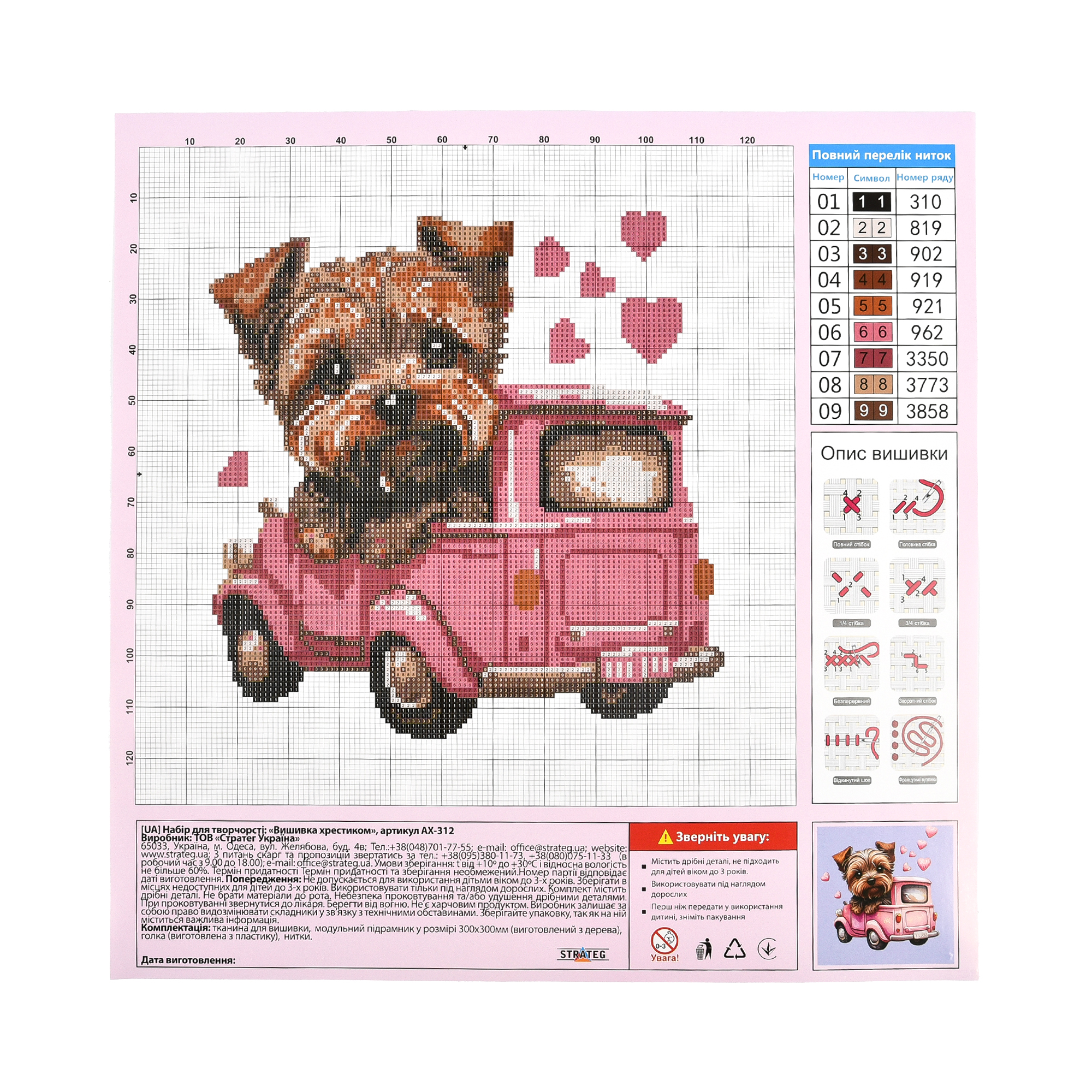 Creative cross-stitch kit Dog behind the wheel Strateg size 30x30 cm (AX-312)
