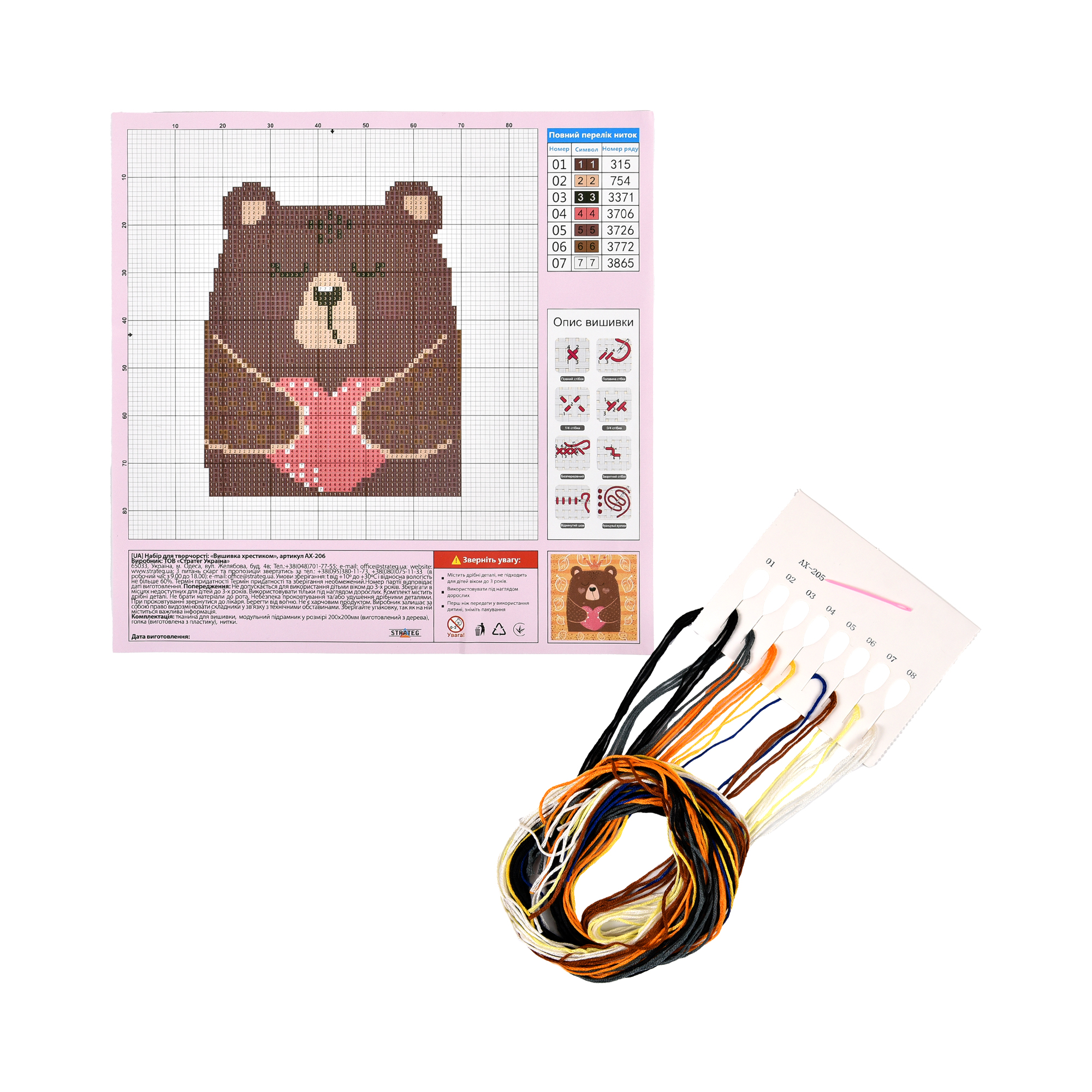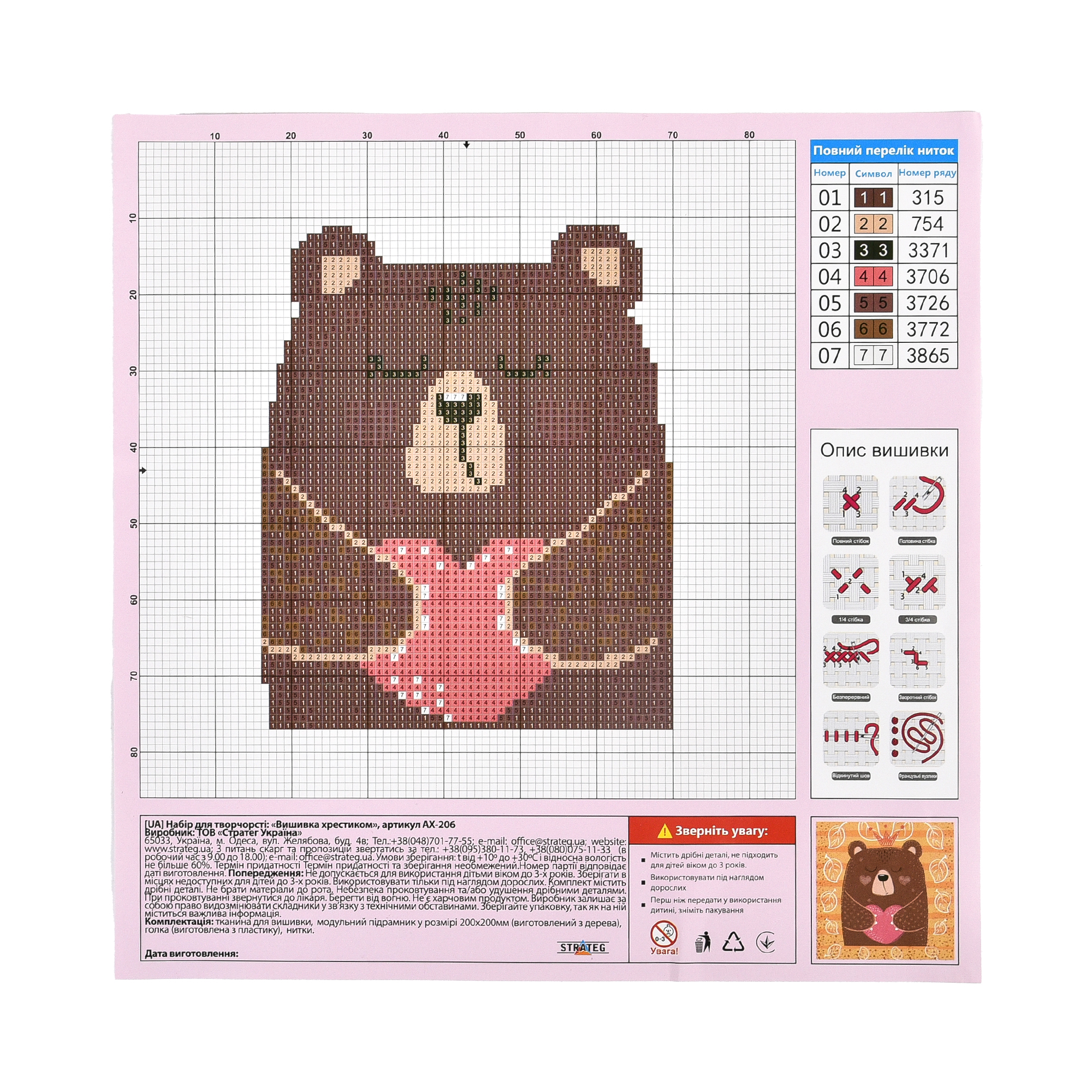 Cross-stitch kit for creativity Bear cub Strateg size 20x20 cm (AX-206)