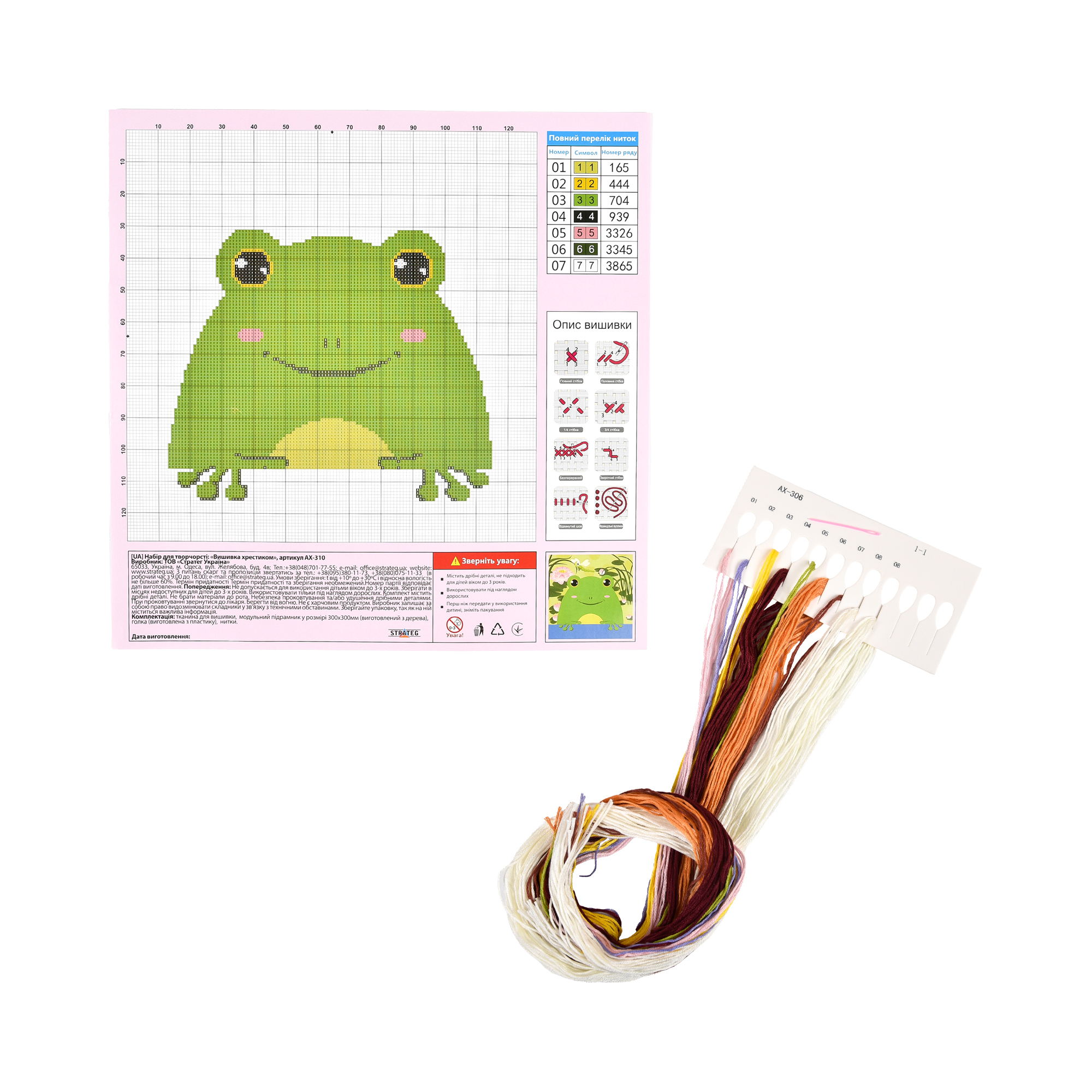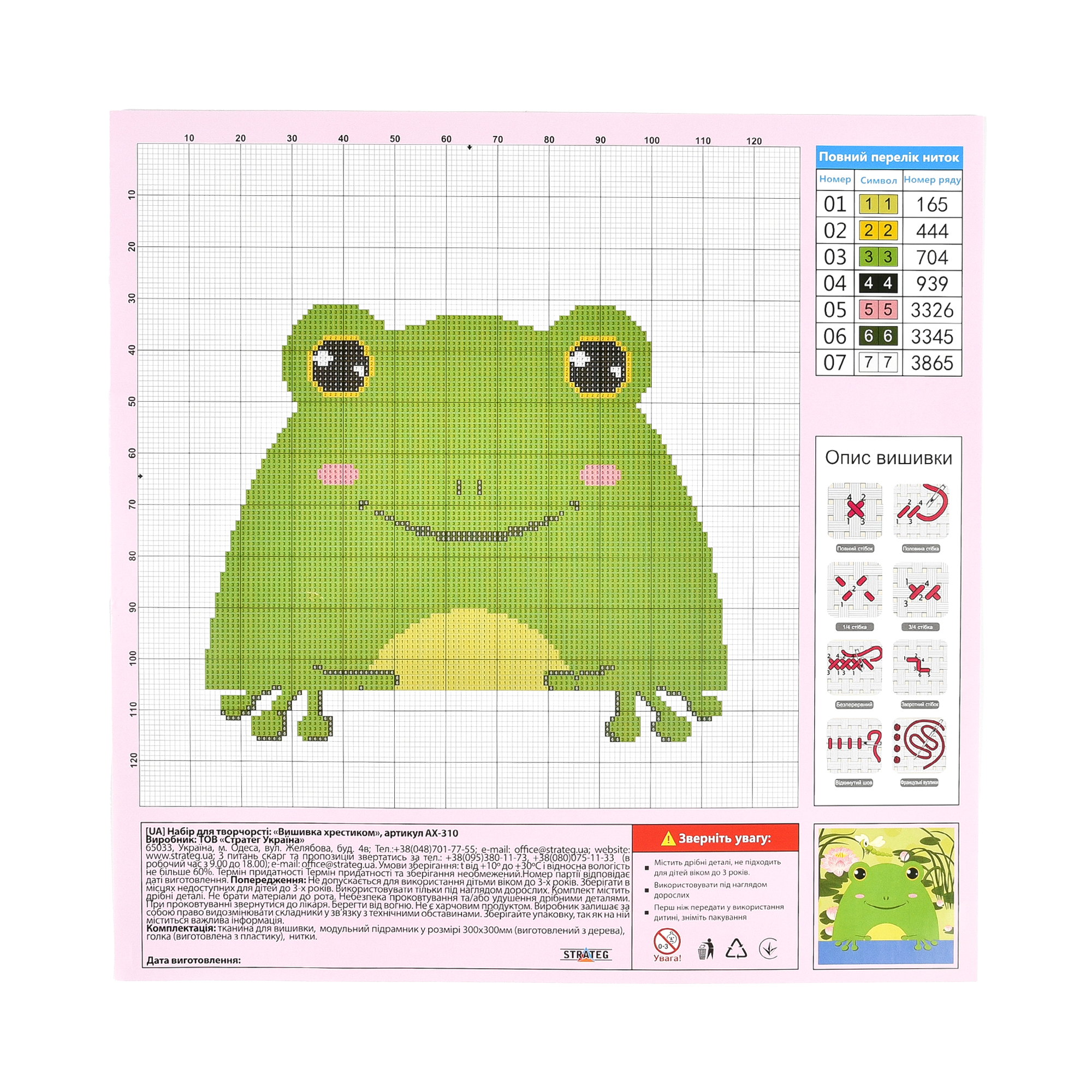 Creative cross-stitch kit Frog Strateg size 30x30 cm (AX-310)