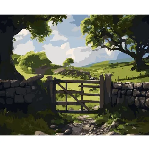 Paint by number Strateg Nature outside the fence on a colored background, size 40x50 cm (MZ063)