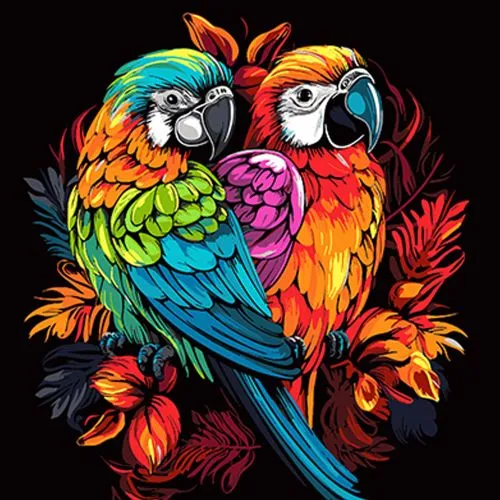 Paint by number Strateg Parrots in floral pop art on a black background size 40x40 cm (AV4040-41)