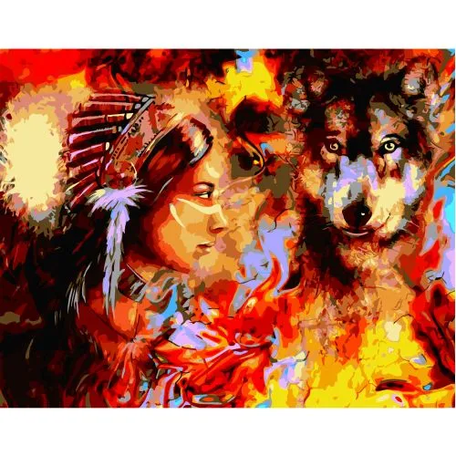 Paint by number Comanche woman with wolf, 40x50 cm