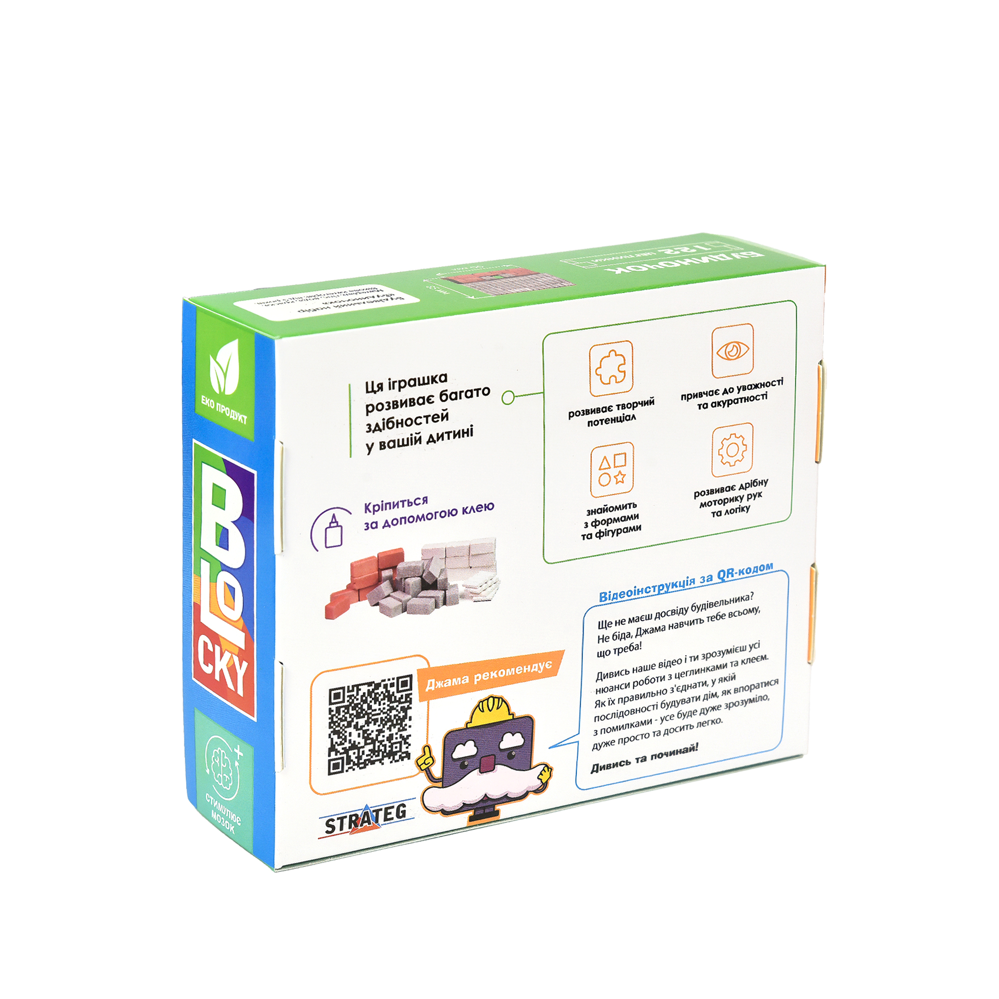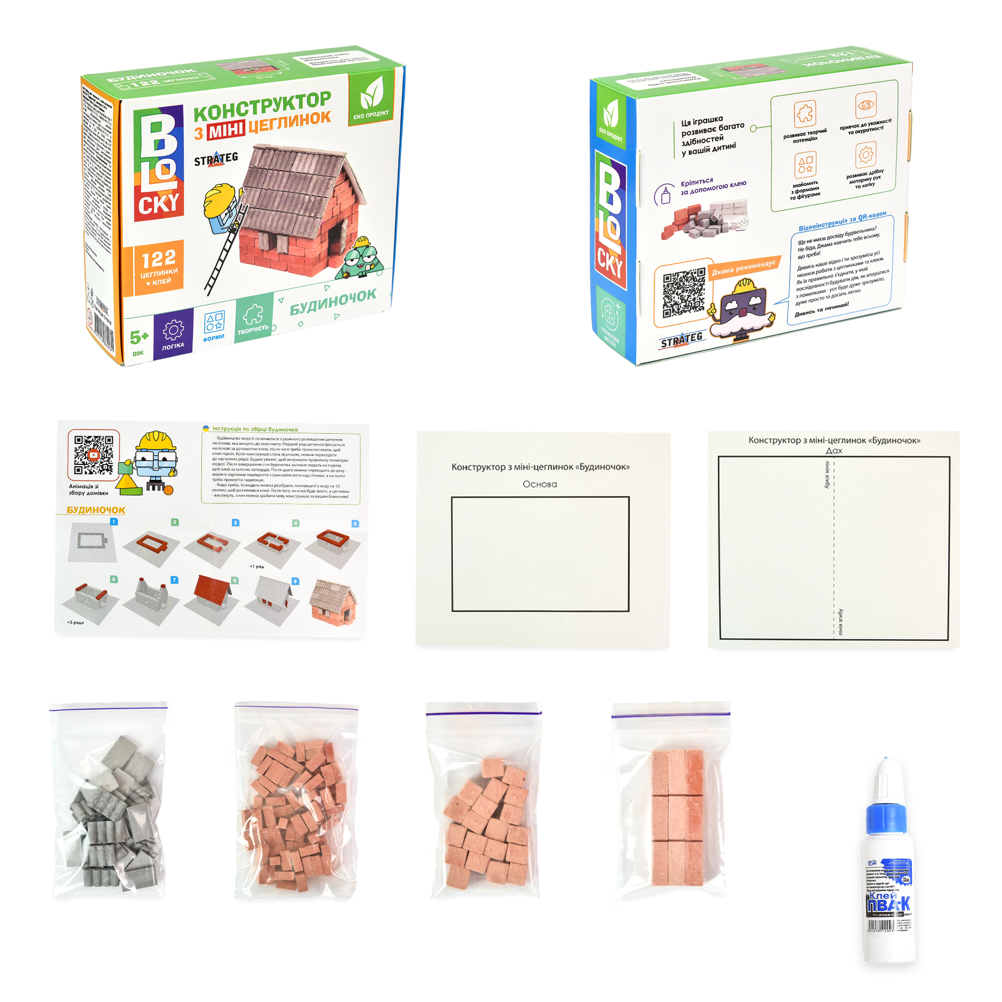 ♦ Package contents: box, bricks - 122 pcs, PVA glue, a set of additional elements - 1 pc, instructions.