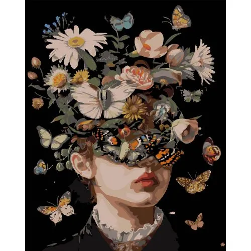 Картина по номерам Strateg ПРЕМИУМ Девушка и бабочки на черном фоне размером 40х50 см (AH1176-19