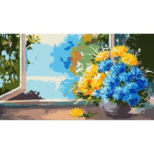 Картина по номерам Strateg Букет цветов на окне размером 50х25 см (WW181)