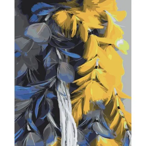 Картина по номерам Strateg Жовтоблакитне пір'я с лаком размером 40х50 см SY6545