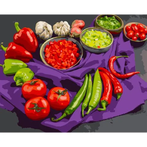 Картина по номерам Strateg Овощной ассортимент на цветном фоне размером 40х50 см (MZ056)