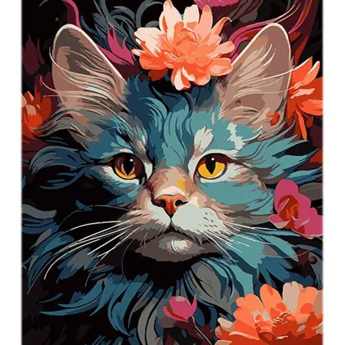 Картина по номерам Strateg Кошачья цветочная грация на черном фоне размером 40х50 см (AH1105)