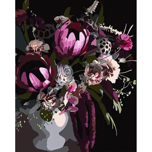 Картина по номерам Strateg Нежный букет на черном фоне размером 40х50 см (AH1007)