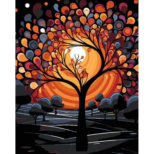 Картина по номерам Strateg Витражное дерево любви на черном фоне размером 40х50 см (AH1074)