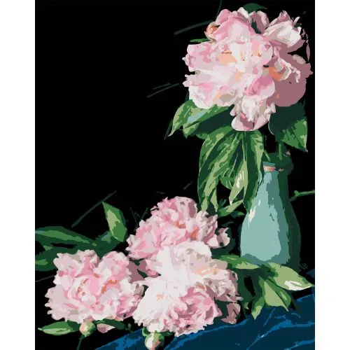 Картина по номерам Strateg ПРЕМИУМ Розовые пионы на черном фоне размером 40х50 см (AH1186-18)