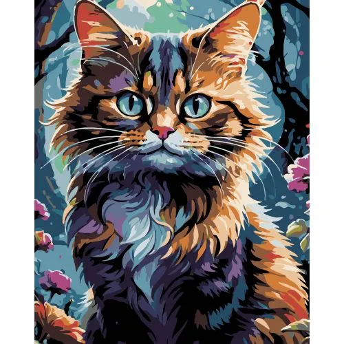 Картина по номерам Strateg ПРЕМИУМ Кот в саду на черном фоне размером 40х50 см (AH1182-19)