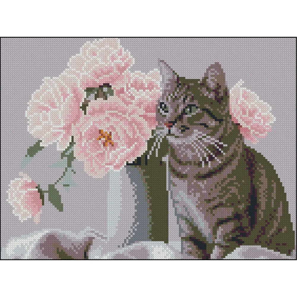 Алмазна картина Strateg Кіт з квітами 30х40 (ZAV3040-59)