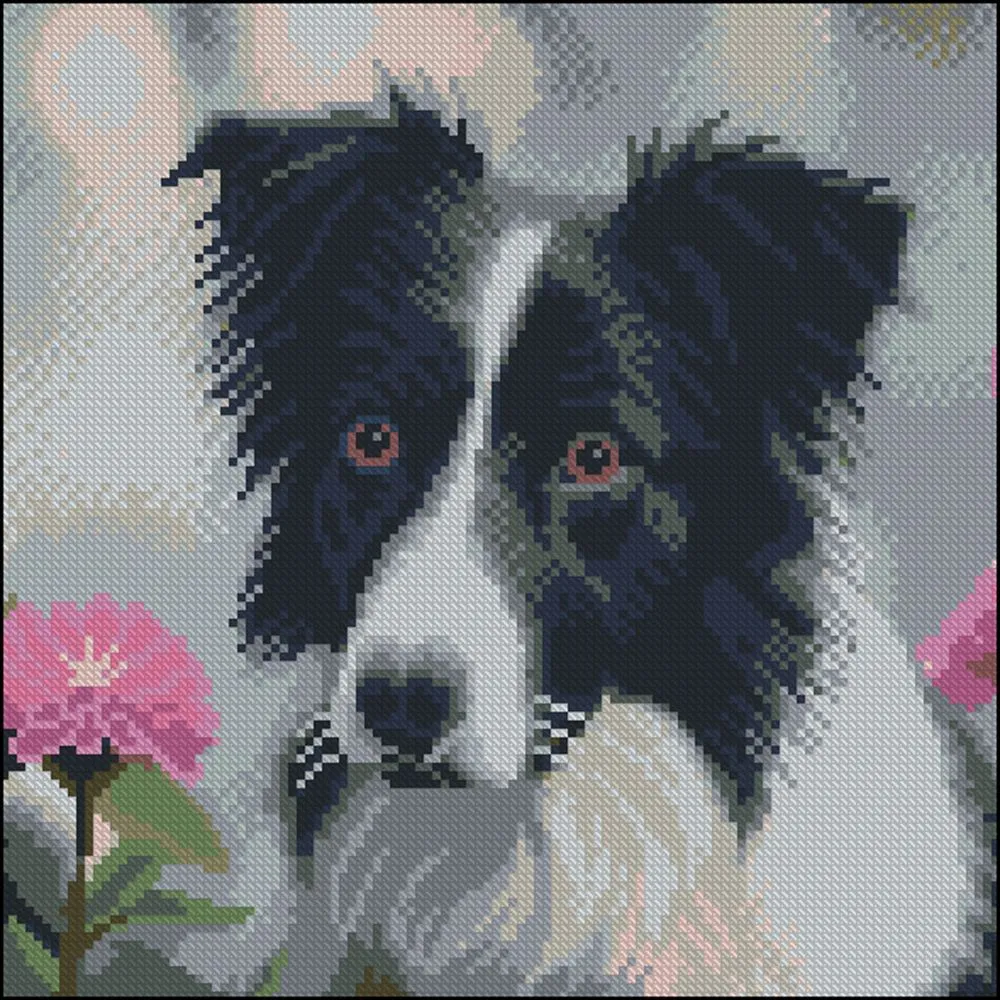 Алмазна картина Strateg Пес і жоржини 30х30 (FZ3030-02)