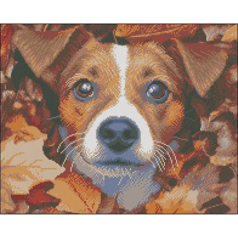 Алмазна картина Strateg Пес у листях 40х50 (FZ4050-05)