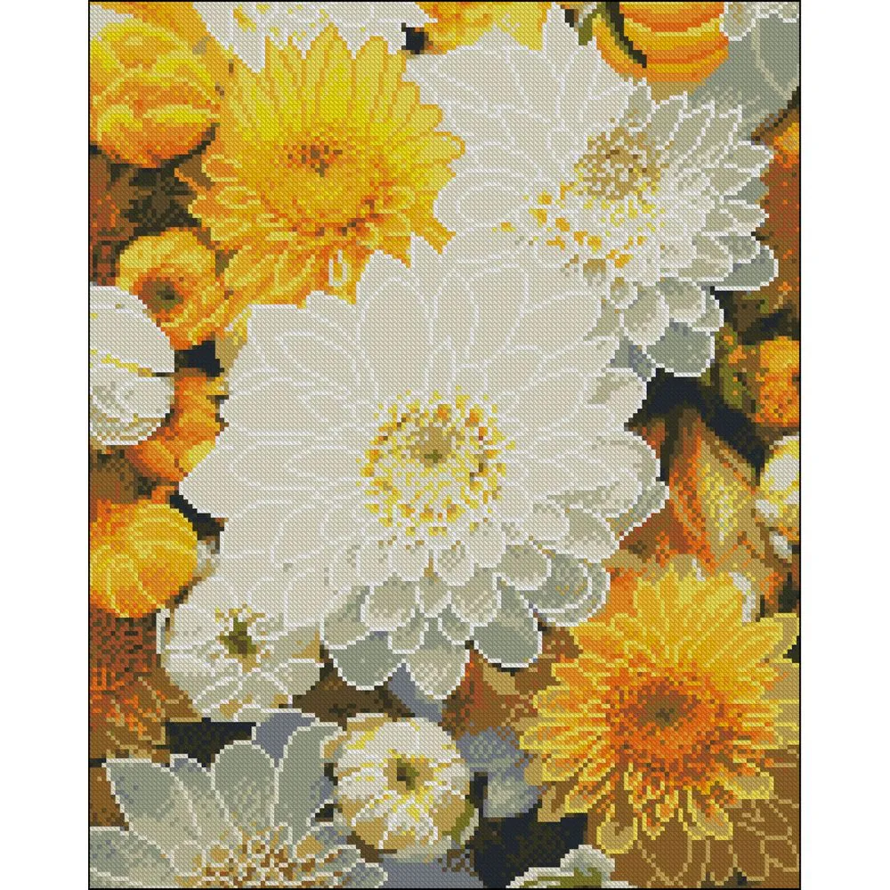 Алмазна картина Strateg Жовто-білі айстри 40х50 (FZ4050-02)