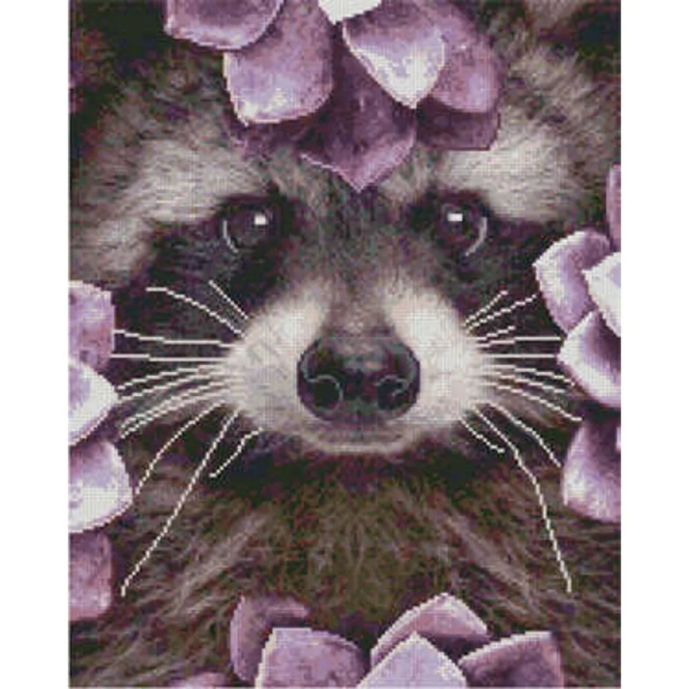 Алмазна картина Strateg Єнот серед квітів розміром 40х50 см (L-019)