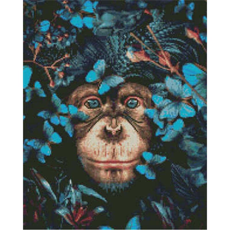Алмазна картина Strateg Шимпанзе з метеликами розміром 40х50 см (L-009)