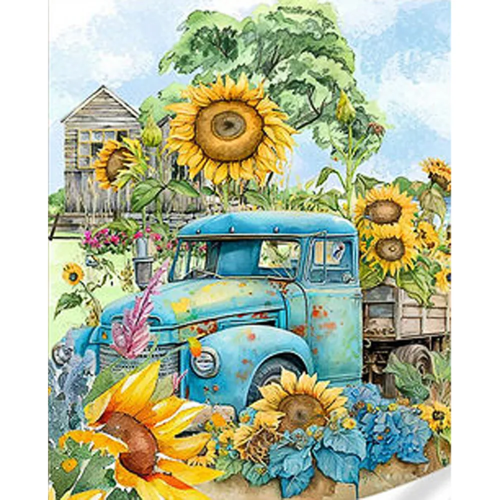 Алмазна мозаїка Strateg Грузовик у соняшниках розміром 30х40 см (HEG86873)