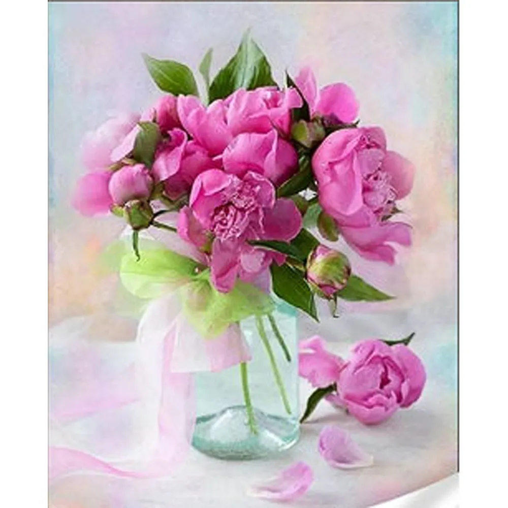 Алмазна мозаїка Strateg Ніжні півонії у скляній вазі розміром 30х40 см (GM86840)