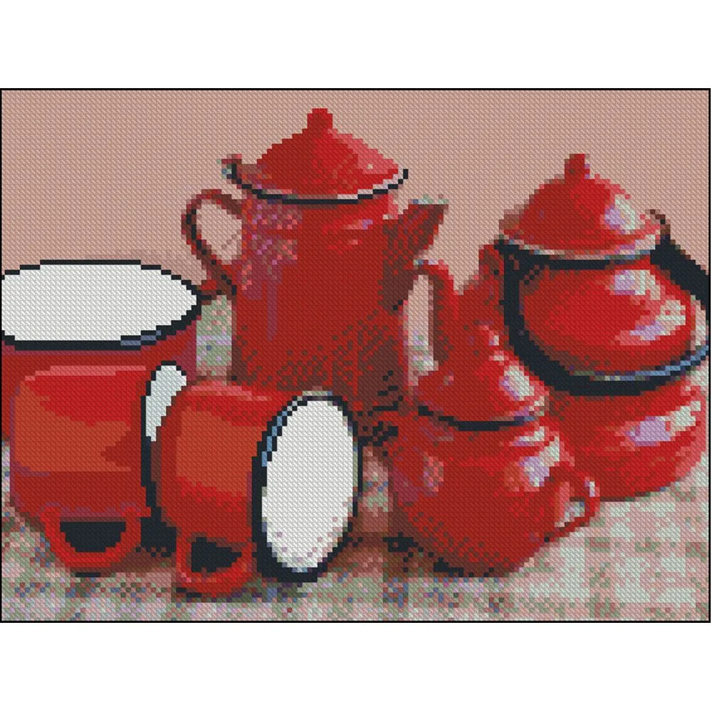 Алмазна мозаїка Strateg ПРЕМІУМ Сервіз без підрамника розміром 30х40 см (ZAV3040-20)