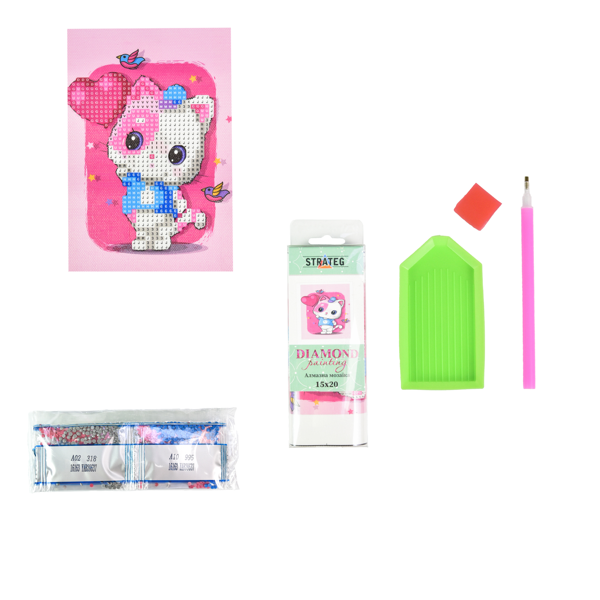 Алмазна мозаїка Strateg Веселе кошеня з кулькою без підрамника розміром 10х15 см (YAB28637)