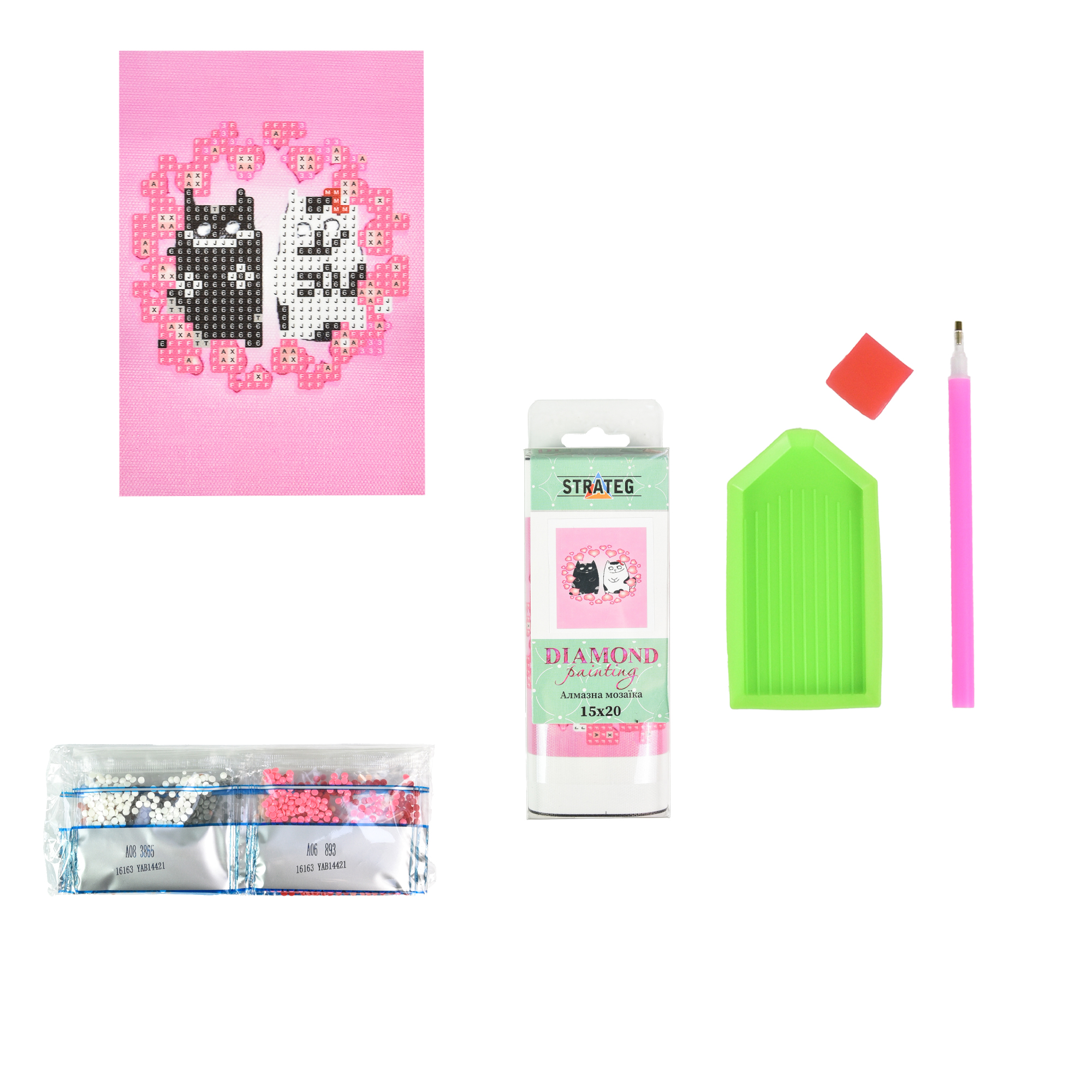 Алмазна мозаїка Strateg Закохані котики без підрамника розміром 10х15 см (YAB14421)