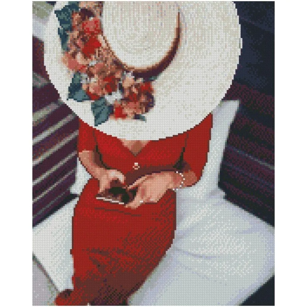 Алмазна мозаїка Strateg Леді в червоному 40х50 см FA0043
