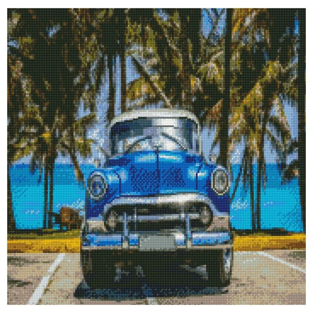Алмазна мозаїка Strateg Синій ретро автомобіль 50х50 см GA0011