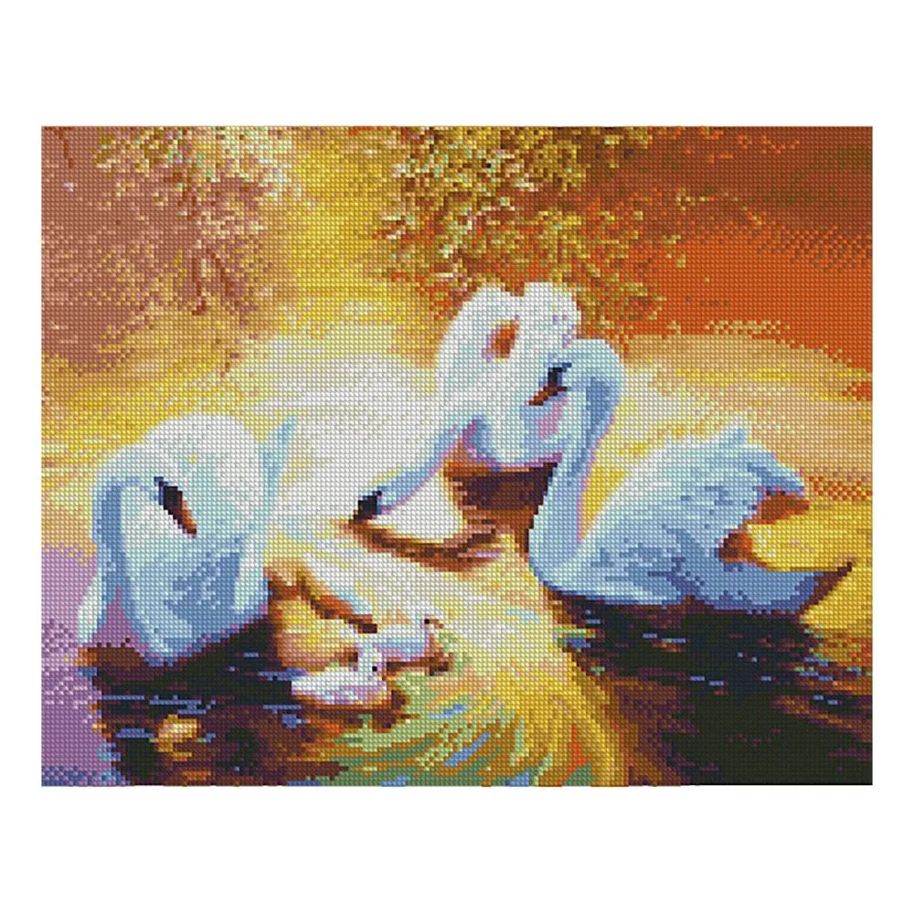 Алмазна мозаїка Strateg Лебеді на заході в ставку 40х50 см FA20142
