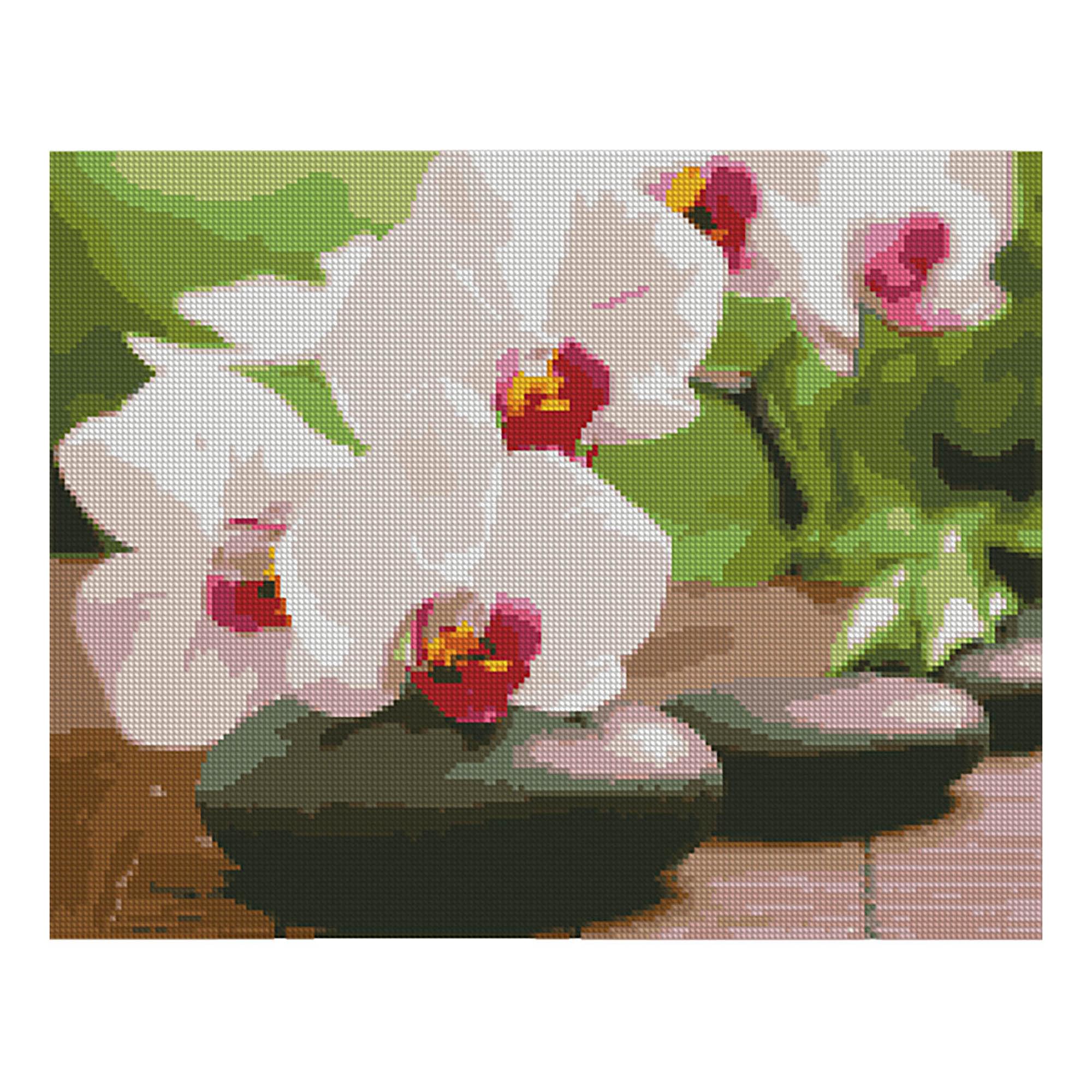 Алмазна мозаїка Strateg Орхідея на камінцях 40х50 см FA40792