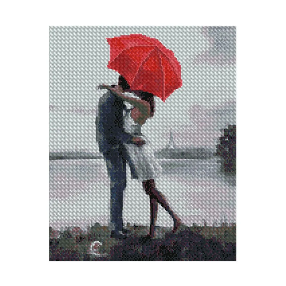 Алмазна мозаїка Strateg Закохана пара під парасолькою 40х50 см FA10563