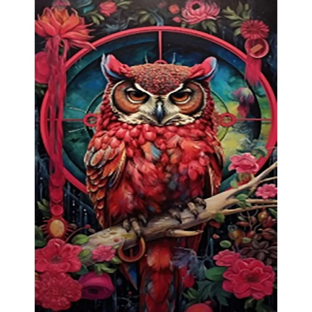 Алмазна мозаїка Strateg Сова у квітах без підрамника розміром 40х50 см (JSFH85881)