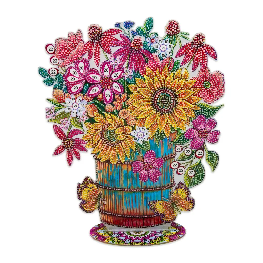 Алмазна мозаїка Strateg Букет квітів на підставці розміром 30х30 см (BJP21)