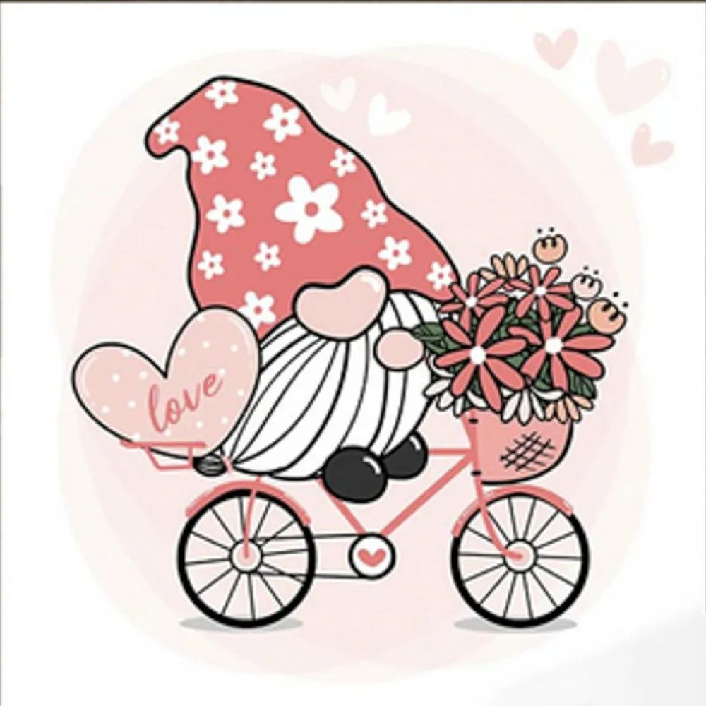 Алмазна мозаїка Strateg Гномик з квітами на велосипеді розміром 30х30 см (ME13826)