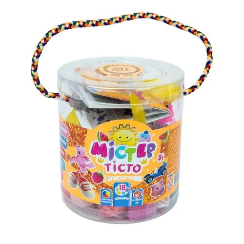 Набір маси для ліплення Strateg Містер тісто 18 кольорів з блискітками у блістері українською мовою (71804)