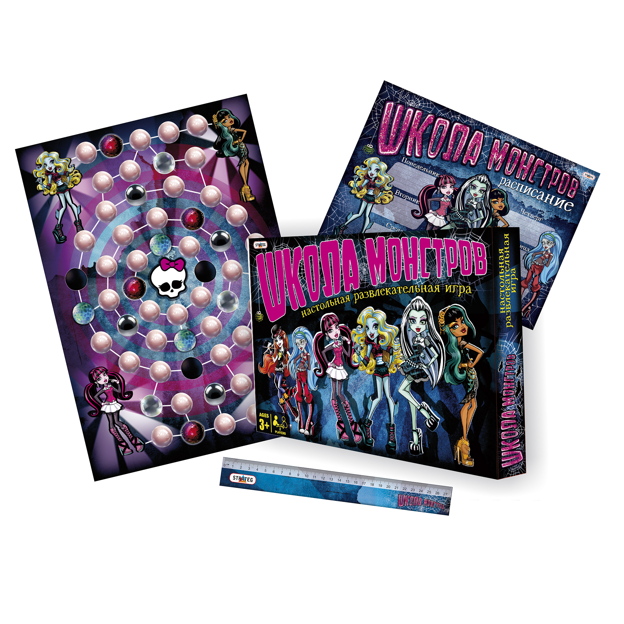 «Школа монстрів» – це проста настільна гра для дітей з їхніми улюбленими персонажами. Розклавши ігрове поле і кинувши кубик, перший учасник робить хід. На шляху до перемоги гравців чекають цікаві завдання та несподівані перешкоди. Подолавши всі труднощі, перемогу здобуде той гравець, чия фішка досягне фіналу першою.