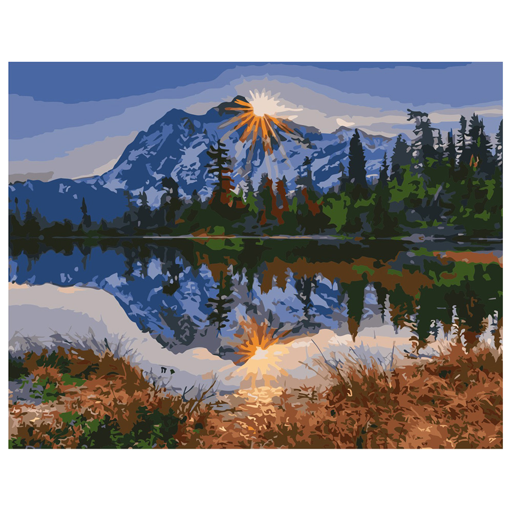 Картина за номерами Strateg Гори біля озера з лаком розміром 40х50 см VA-0311