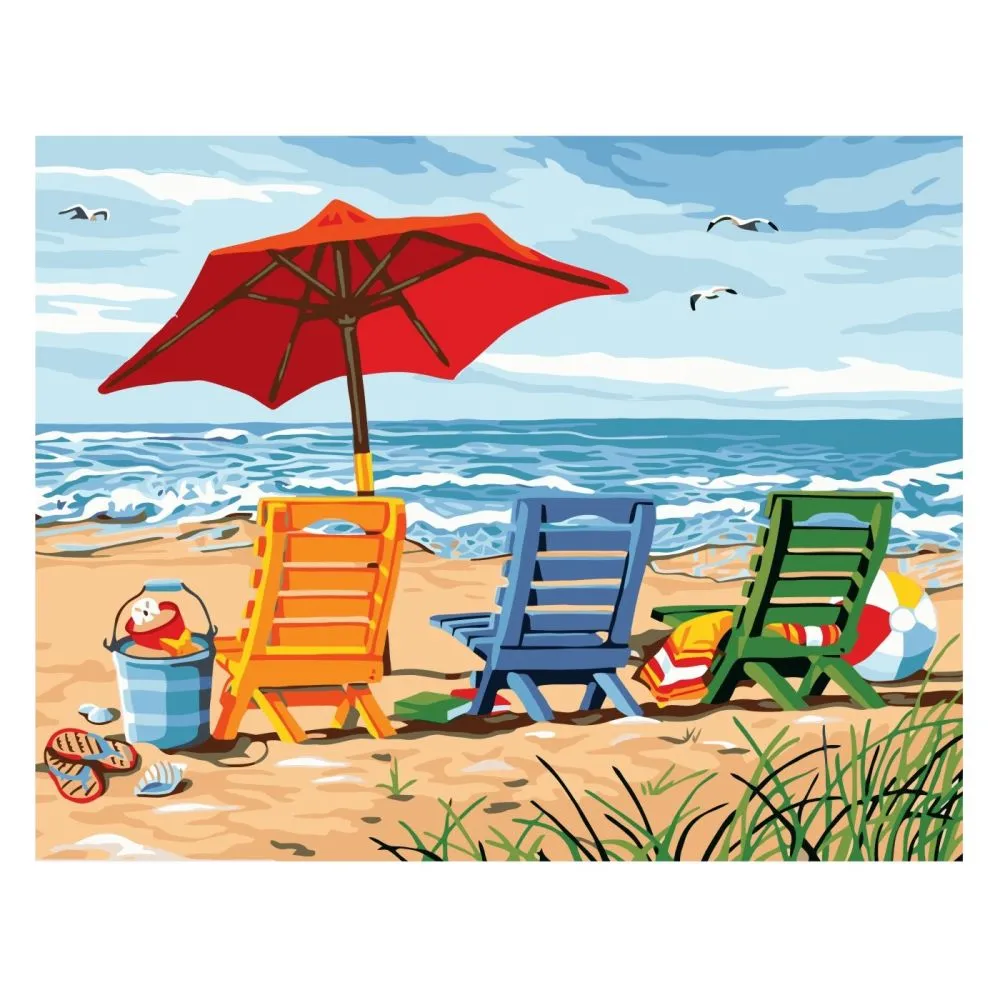 Картина за номерами Strateg Барвисті шезлонги з лаком розміром 40х50 см VA-2295