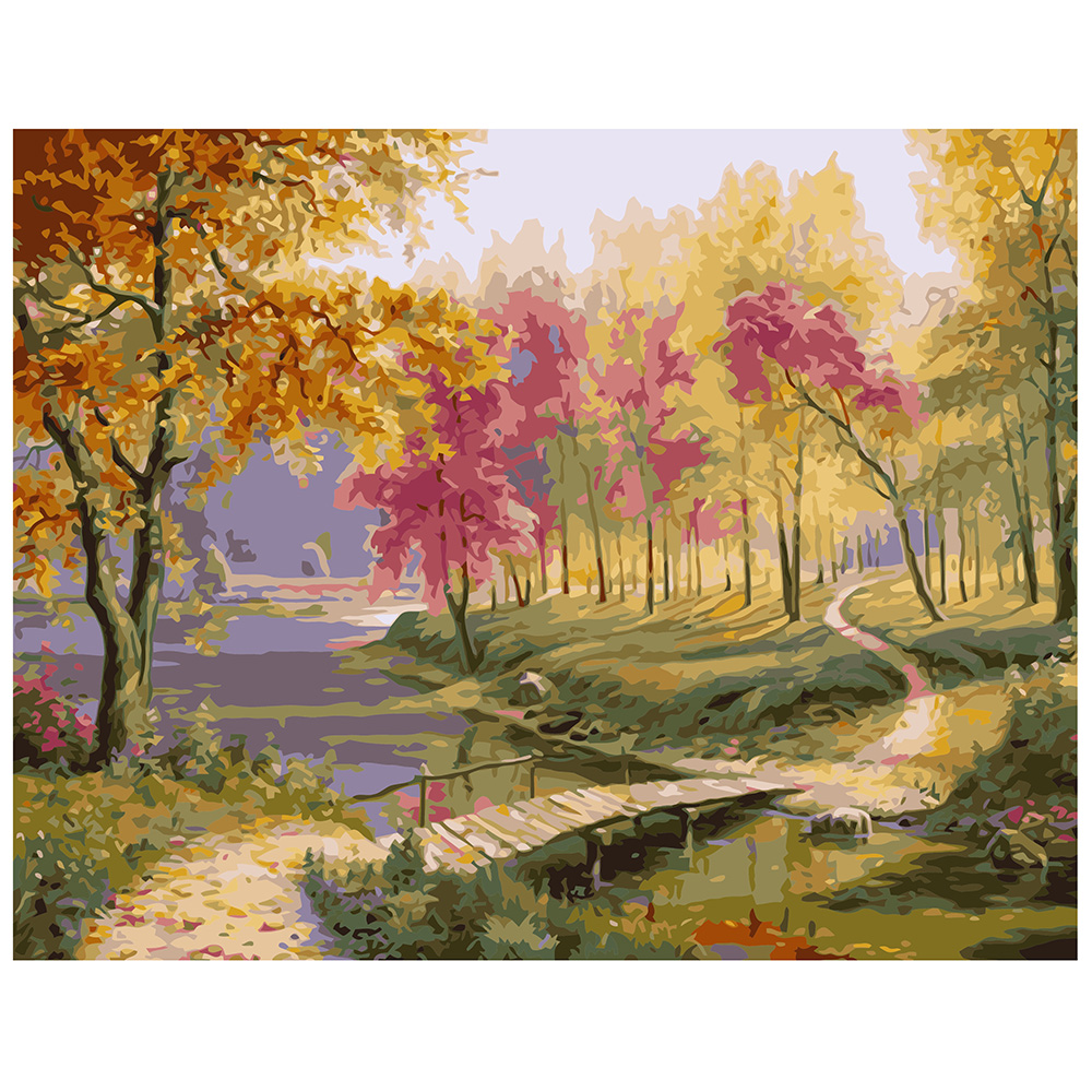 Картина за номерами Strateg Барвистий осінній пейзаж з лаком розміром 40х50 см VA-1523