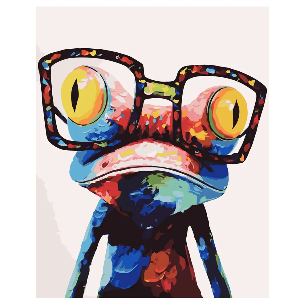 Картина за номерами Strateg Поп-арт: Жабеня в окулярах з лаком розміром 40х50 см VA-2112