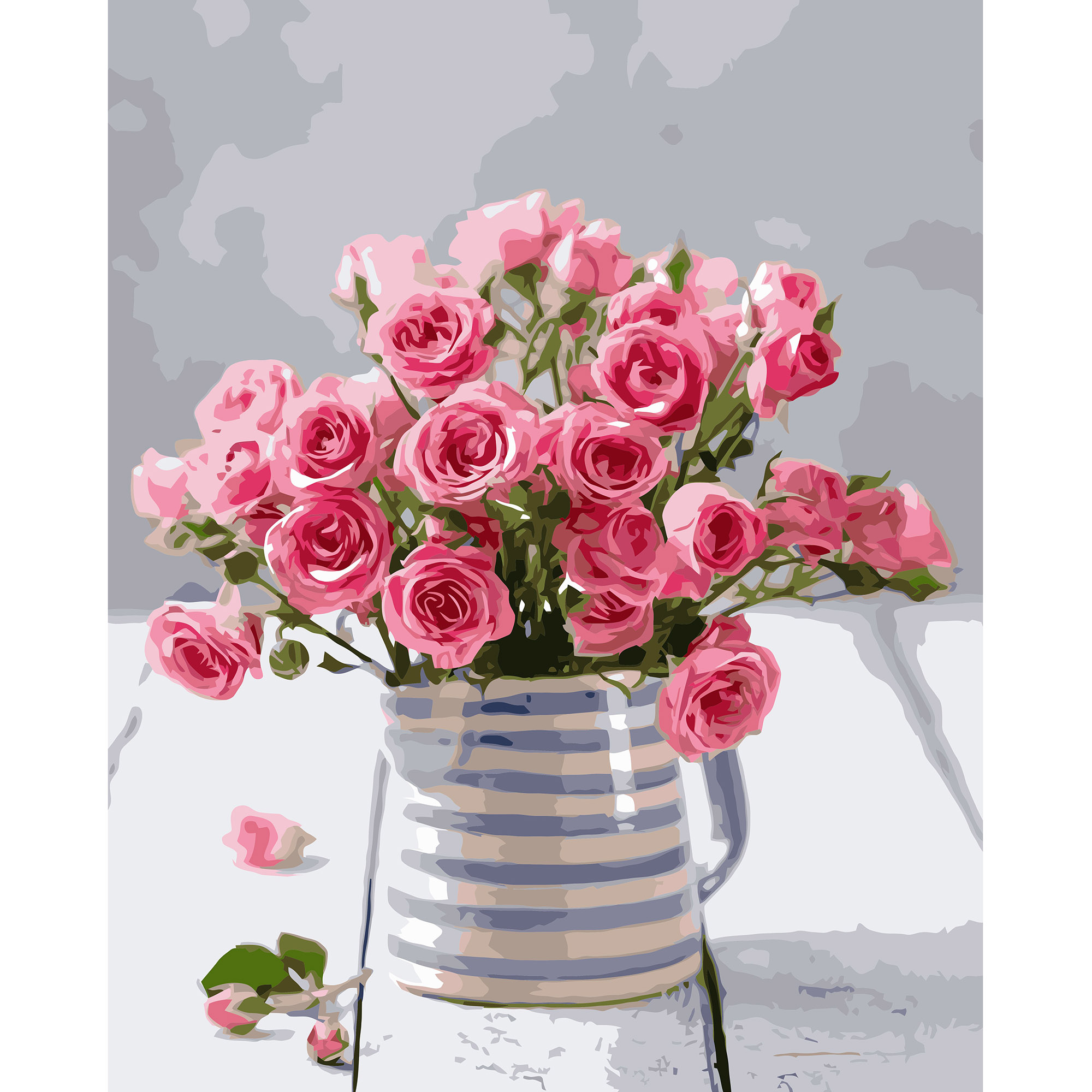 Картина за номерами Strateg Рожеві троянди з лаком розміром 40х50 см VA-3168