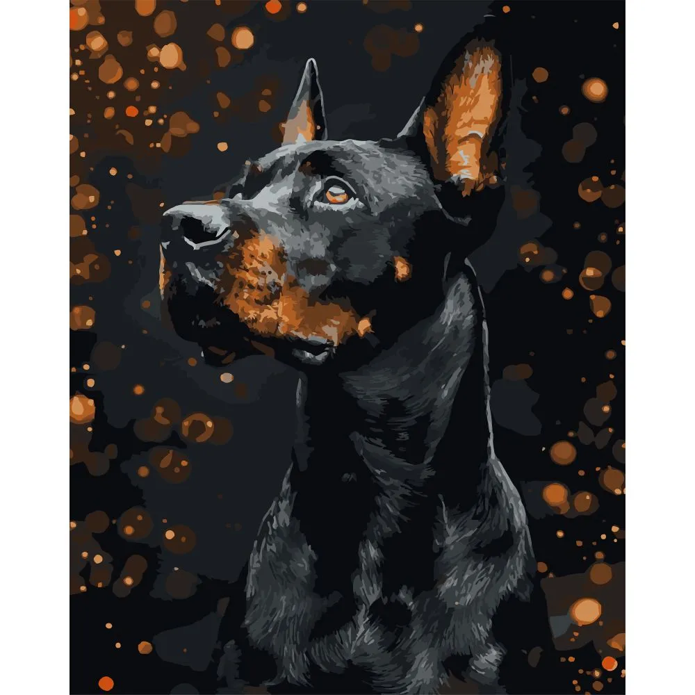 Картина за номерами Strateg Доберман на чорному фоні 40Х50 (AH1286)