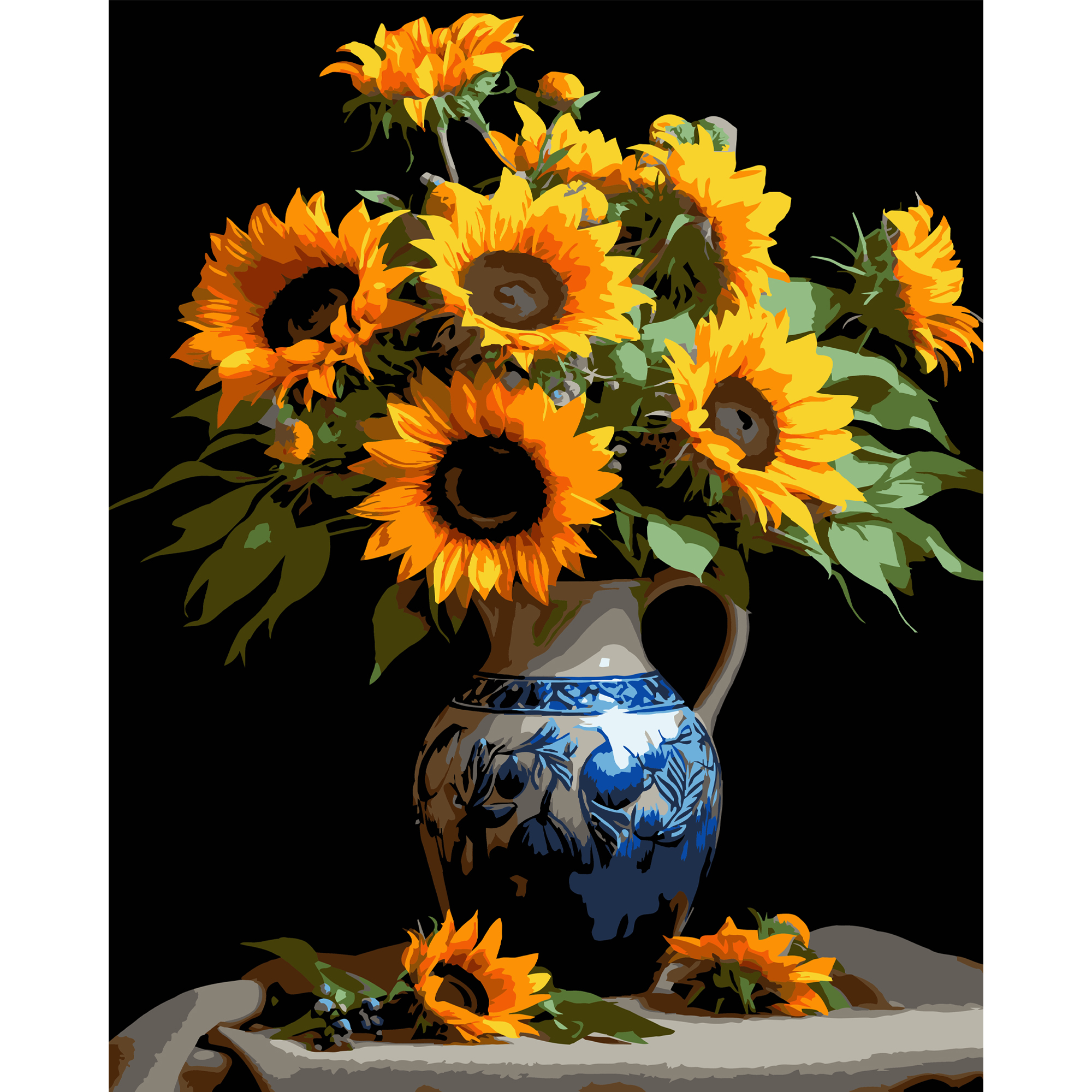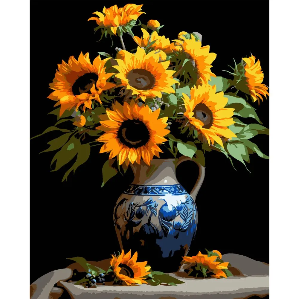 Картина за номерами Strateg ПРЕМІУМ Глечик літа на чорному фоні розміром 40х50 см (AH1156)